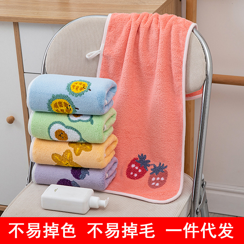 漫画のタオルのバスタオルのセットサンゴのベルベットの牛油の実の吊り下げ式のタオルのかわいい果物の刺繍の家庭用バスタオル