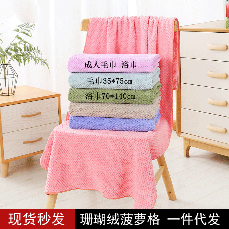 竹のベルベットのバスタオルの新製品サンゴのベルベットは吸水成人家庭用の柔らかいバスタオルを厚くして風呂タオルを巻いて国境を越えて卸売りする
