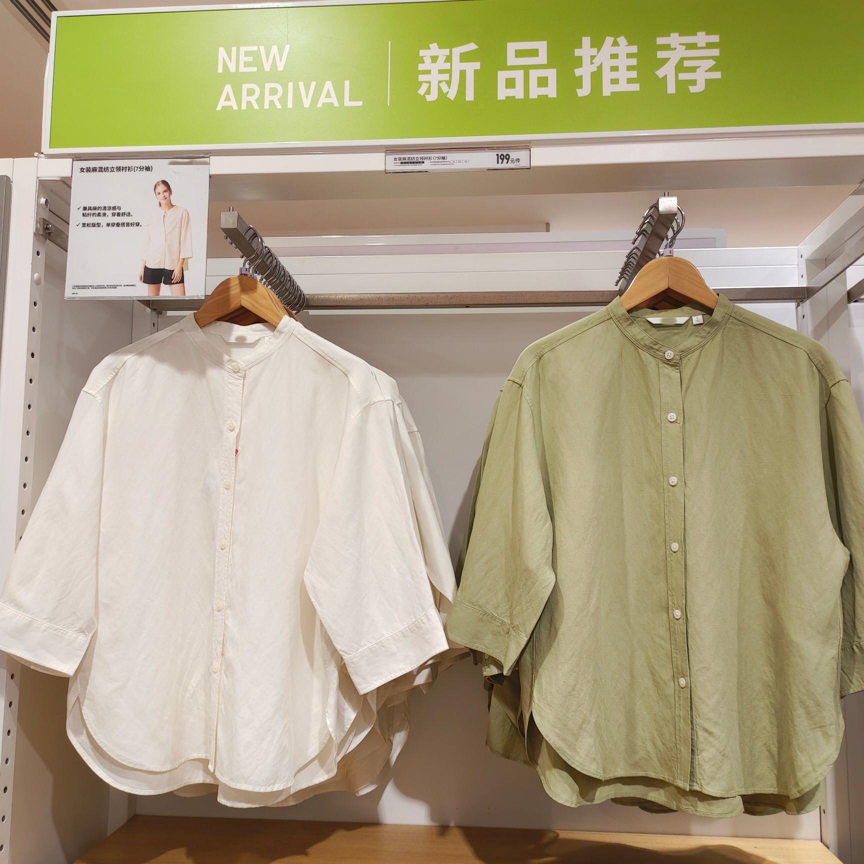 2025春新作 レディース リネン混スタンドカラーシャツ/7分袖シャツ トップス 空調シャツ 薄手ジャケット 475653