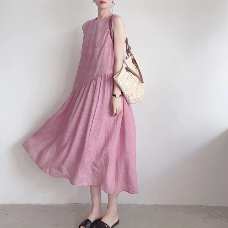 25 新作早春植物系テンセルラミーピンクノースリーブ春気質ベストドレス女性の夏のスプライシング