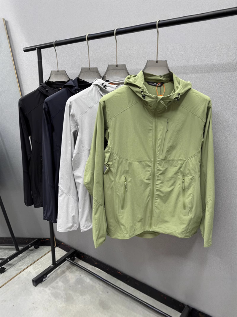 25 新しい春メンズアウトドアサイクリングフード付き軽量、通気性、快適、多用途防水ソフトシェルジャケット