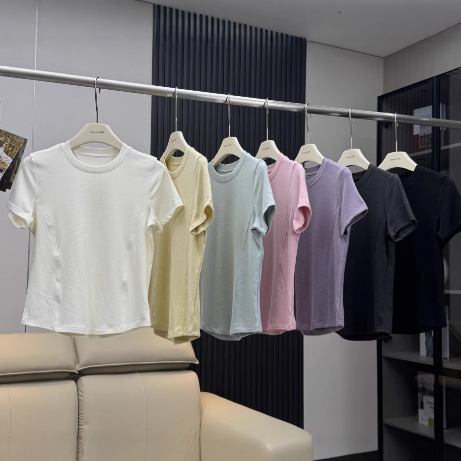25 新スタイルトップワーシングラウンドネック右肩ベーシック多用途痩身スポーツレディース半袖 T シャツ