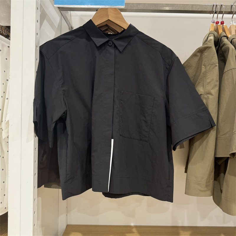 レディースルーズポケットショートシャツ2025秋新作半袖シャツ空調シャツ薄手ジャケット479096
