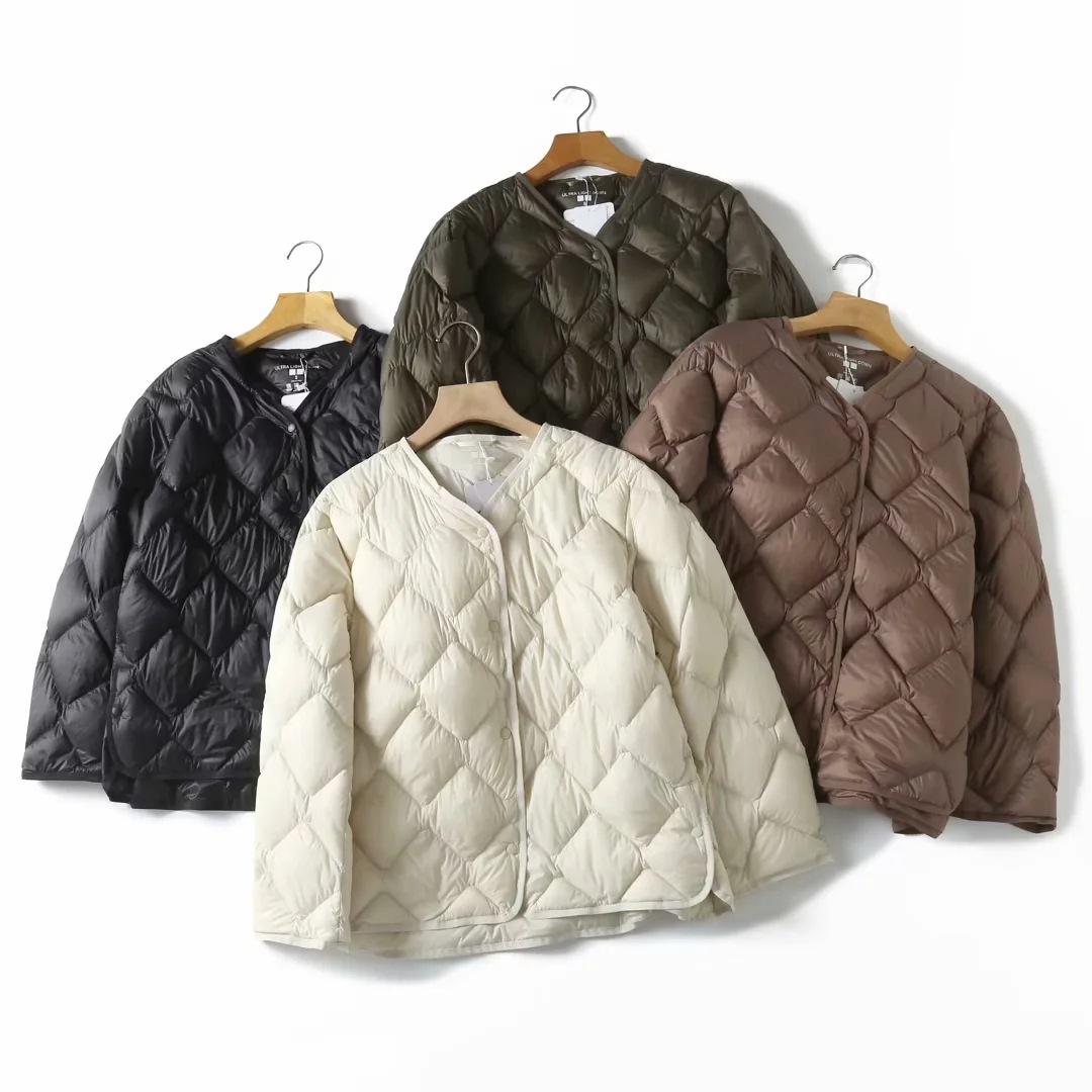 レディース軽量ダウンジャケットカジュアルジャケット菱格ジャケット秋冬新作463073黒オリーブ色