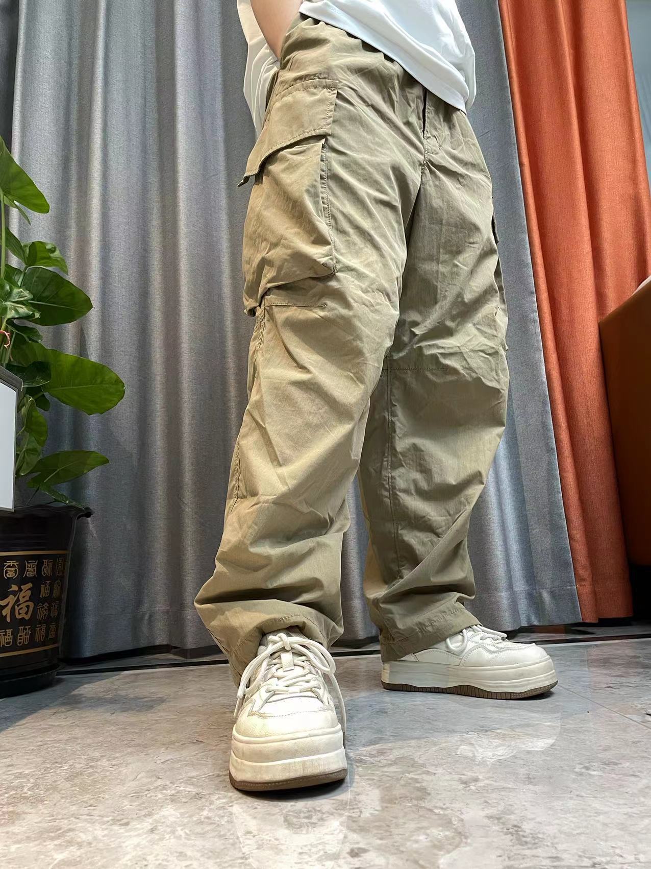 試着室の日は牛の商品です。新商品の男性のまっすぐな筒の広い足の工装のズボンの純色の薄いカジュアルなズボンの傘のズボン