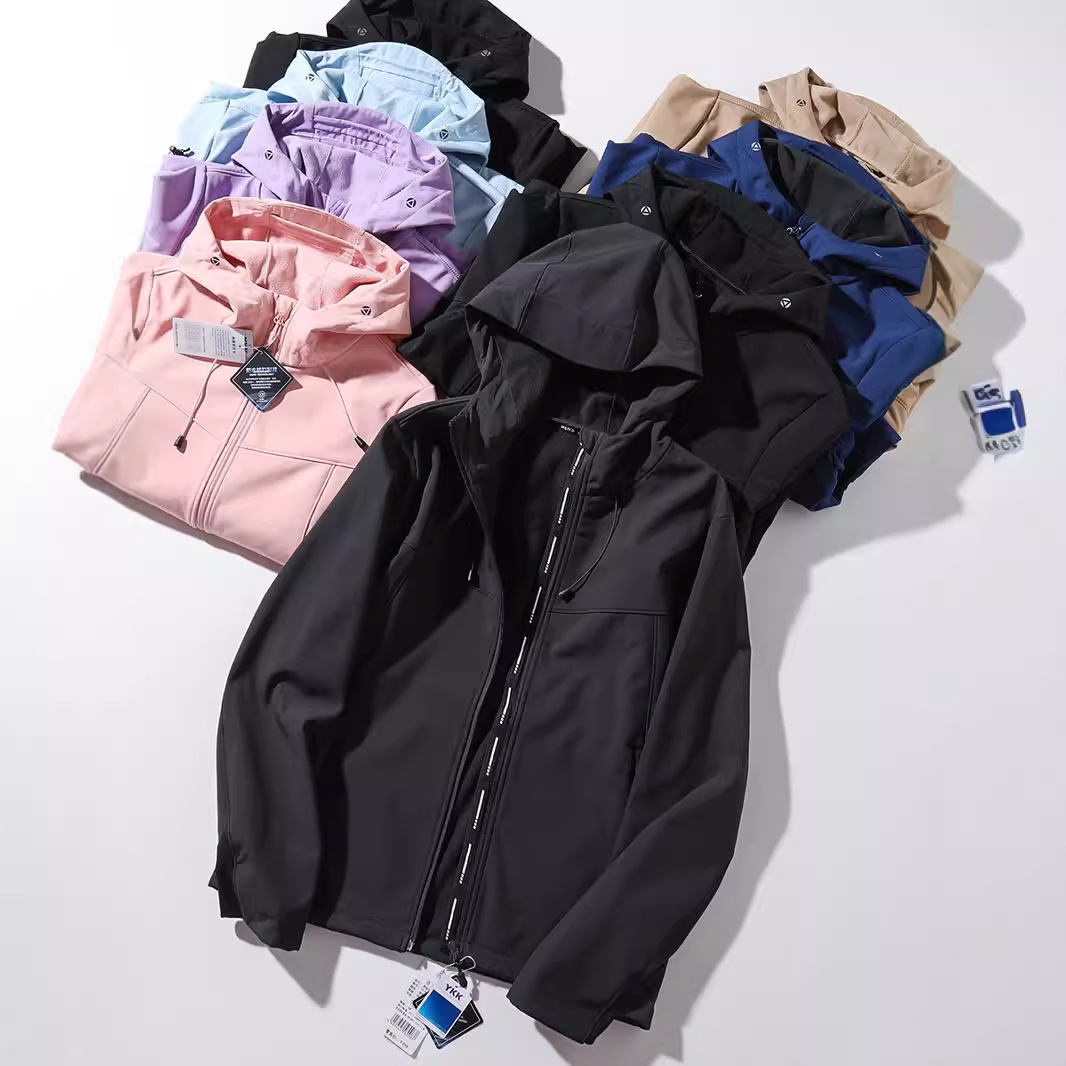 24秋冬カップルジャケットとベルベット保温防風防水屋外ソフトシェル服秋運動突撃服フード