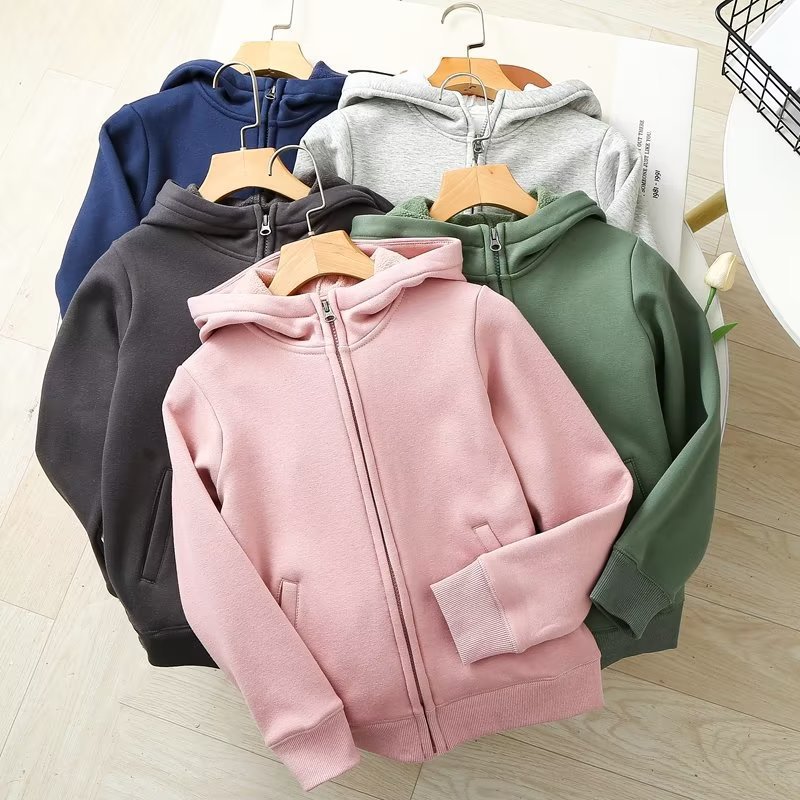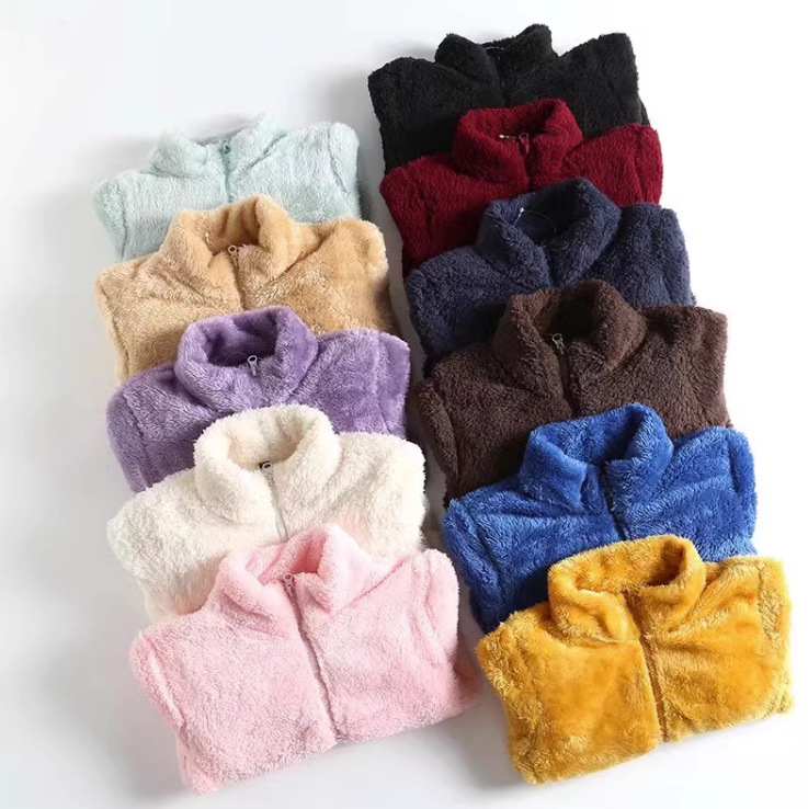 2024男性/女の子は柔らかい羊の小毛運動ファスナーの帽子とベルベットのコートを真似ている