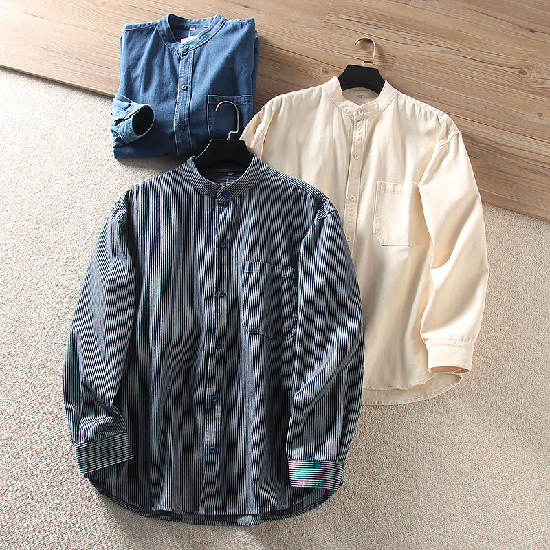 2024メンズ外国貿易スタンドカラーカジュアルデニム長袖シャツfyfy 448483