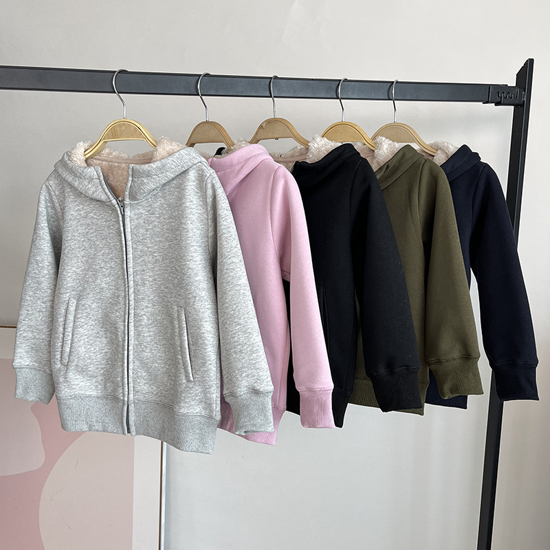 2024秋冬子供服/男女子供は子羊のスポーツをまねて帽子のカーディガンとベルベットのコートをします。