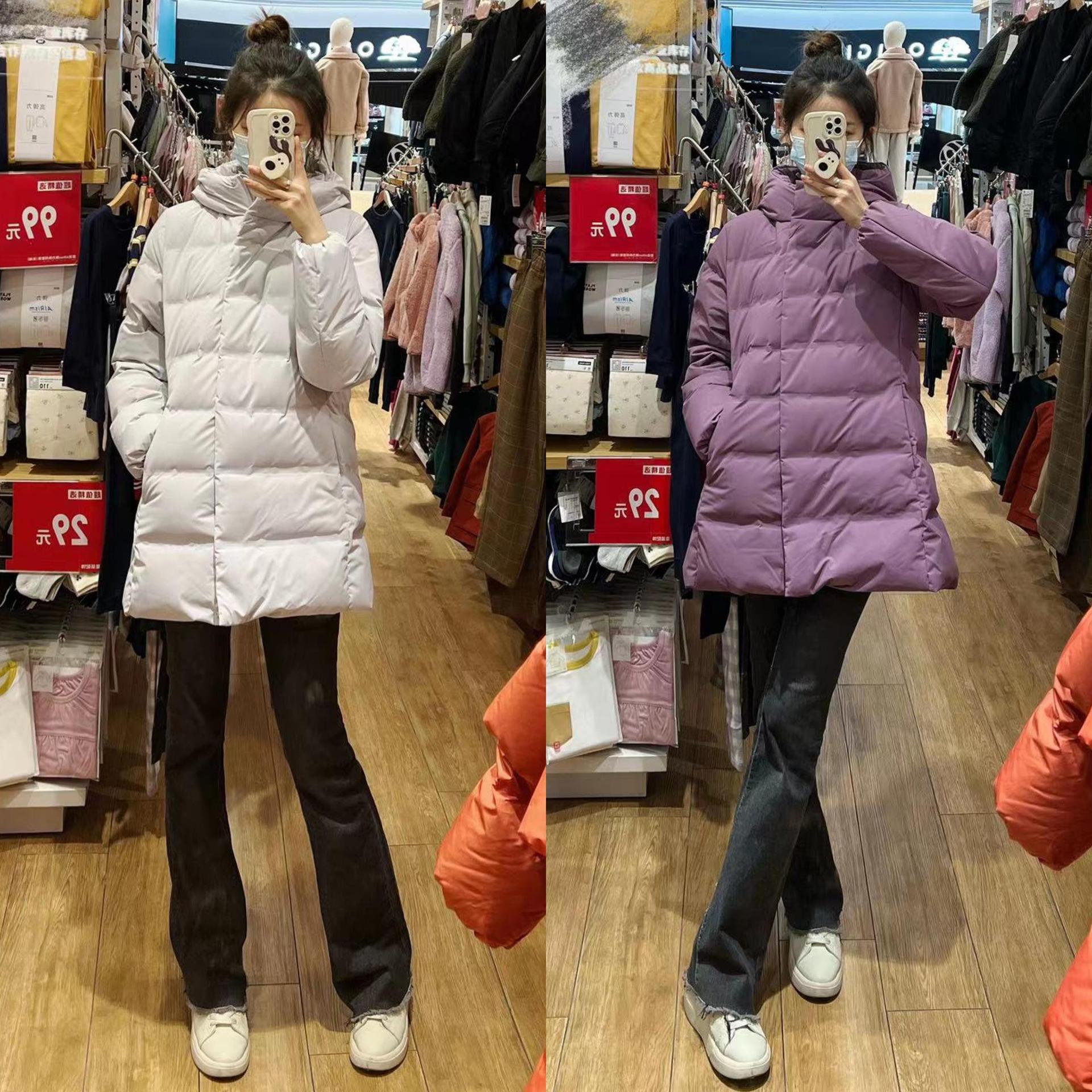 24婦人服冬シームレスフード付きミディアムダウンジャケット防風防水ダウンコート456389 460921
