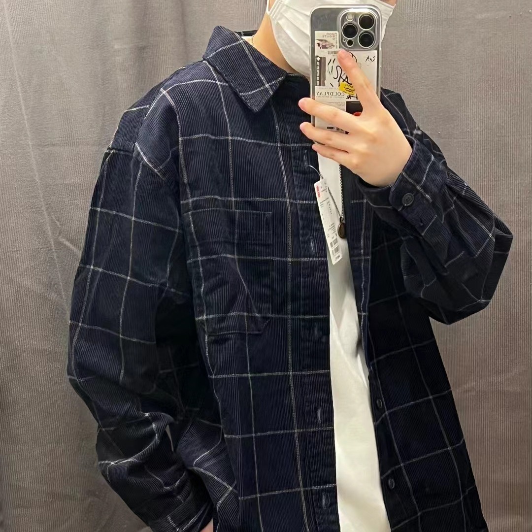 日単試着室の新型コーデュロイ工装格子シャツ長袖ゆるい薄いコートm462393/460689