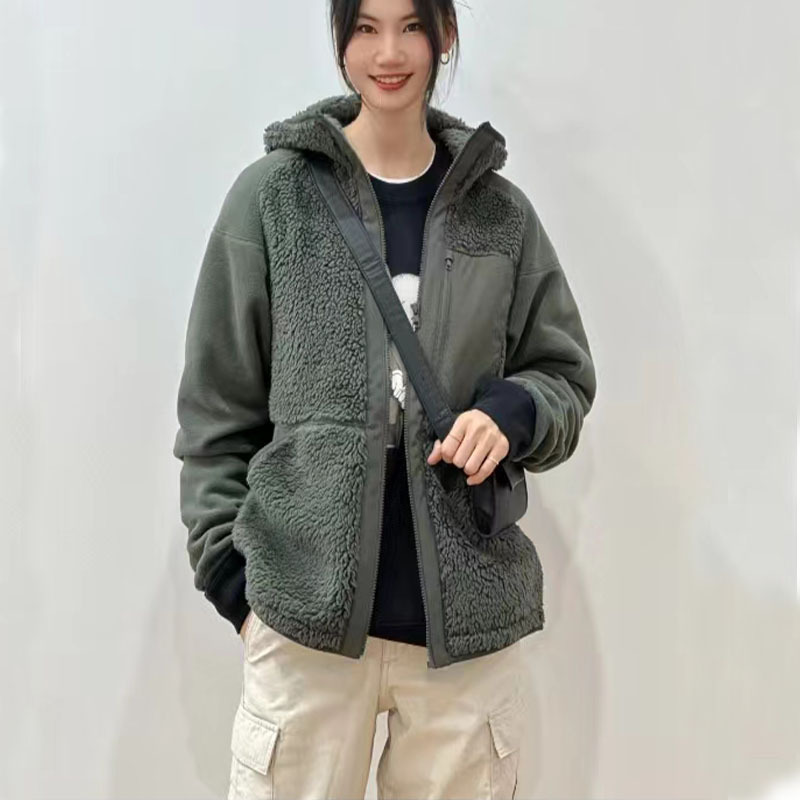 2024冬のカップルのスタンドカラーの防風のフリースのジャケットの長袖の羊の小毛のコート460331