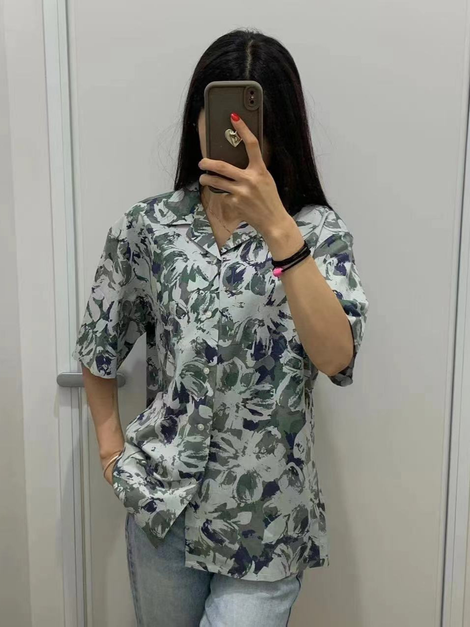 2024夏男性婦人服綿混紡プリント開襟シャツ半袖シャツ473060 473061