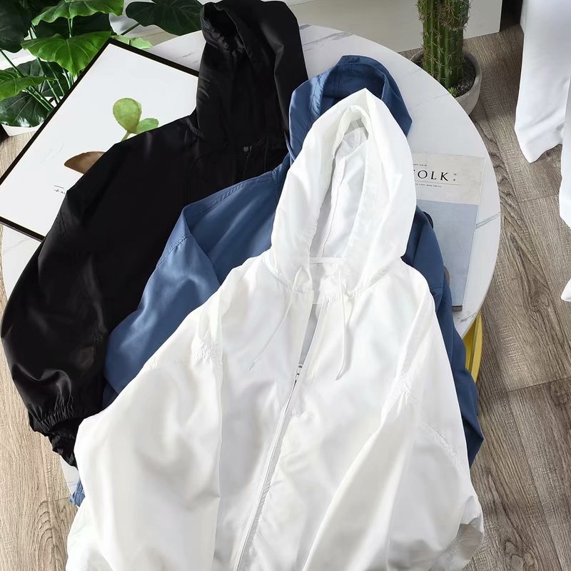 試着室2024年夏の新型女性用ゆるい薄手携帯型紫外線防止ジッパーフード付きコート