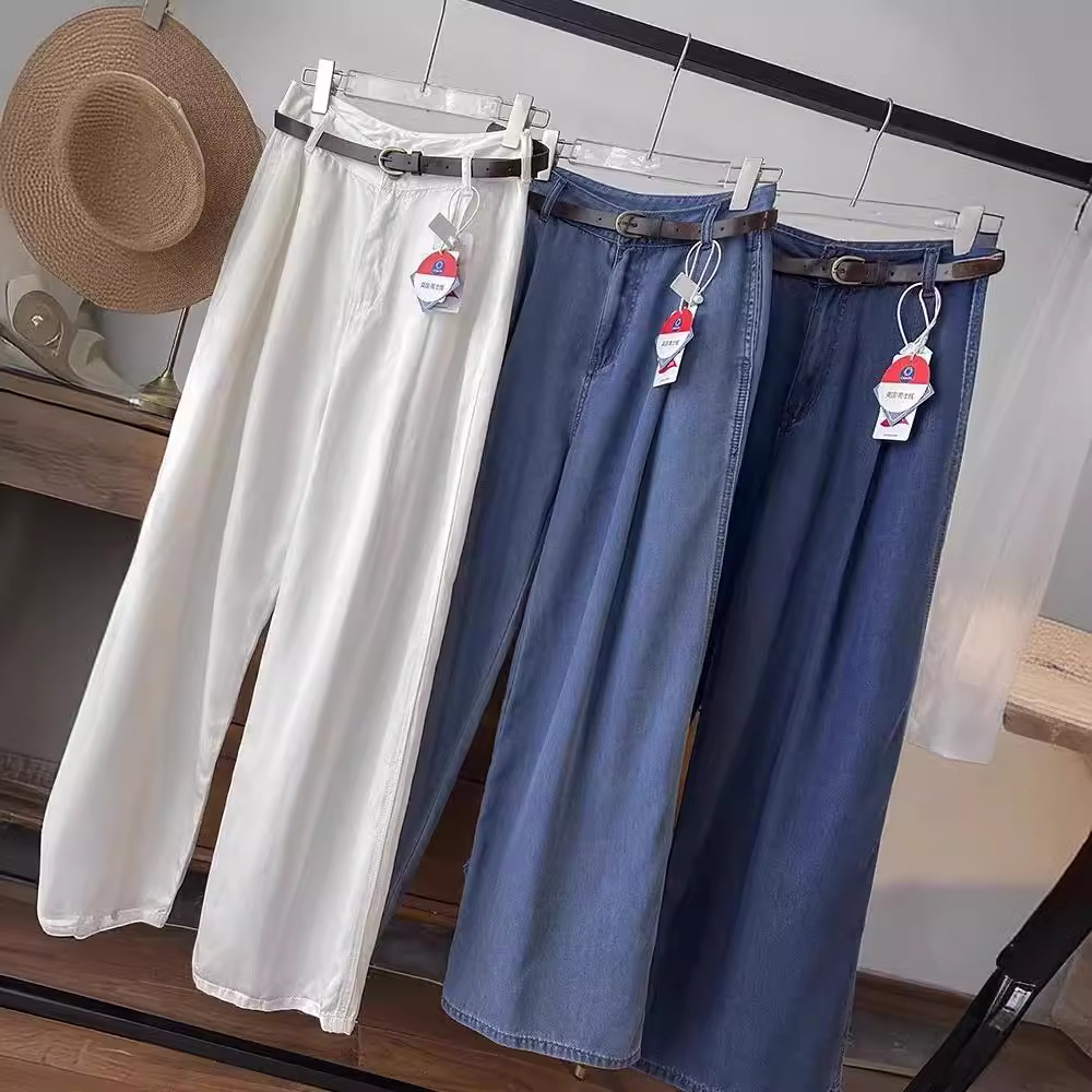 ズボン ~ 足を引っ張る長いシルクの綿の薄いジーンズの女性のゆったりしたワイドパンツのズボンはベルトの夏を送ります。