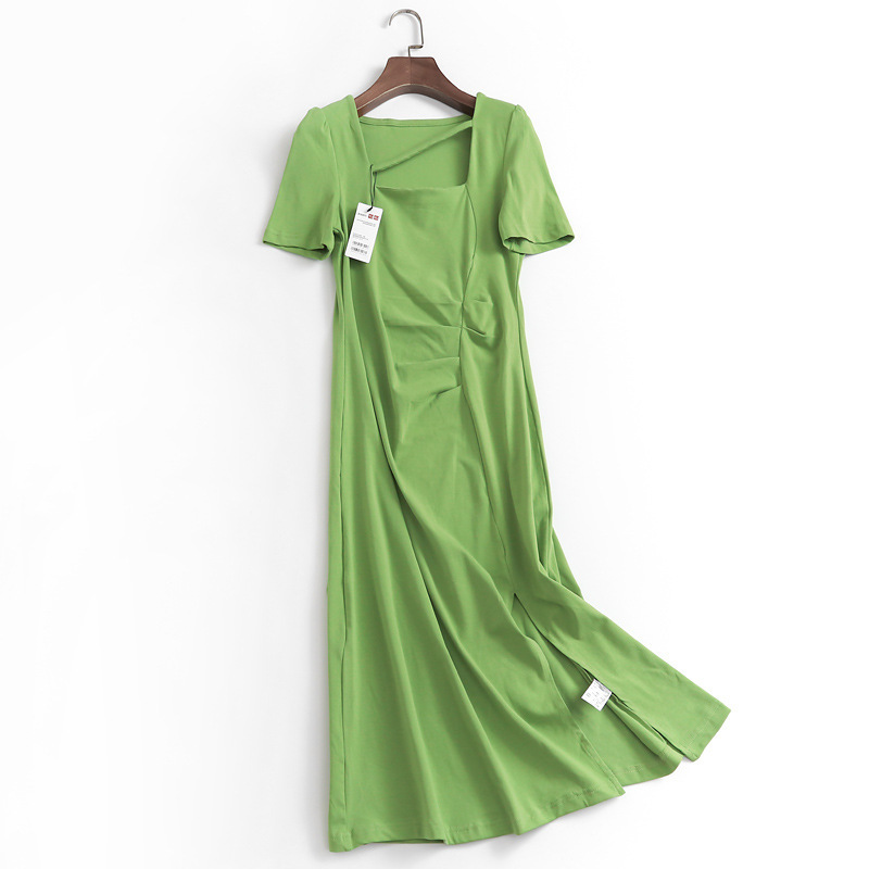 国内の純色はやせていて、四角い襟のしわの泡袖の夏の新型2024半袖のおしゃれな女性のスカートのワンピースです。