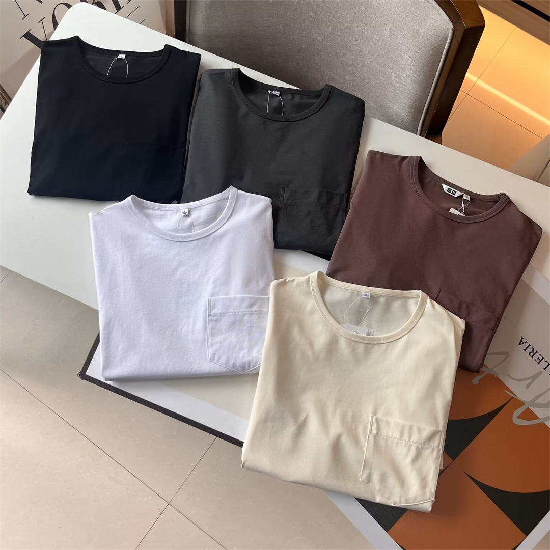 試着室夏メンズレディース涼感綿混紡カジュアルゆるいポケットラウンドネック半袖ボディーtシャツ467134