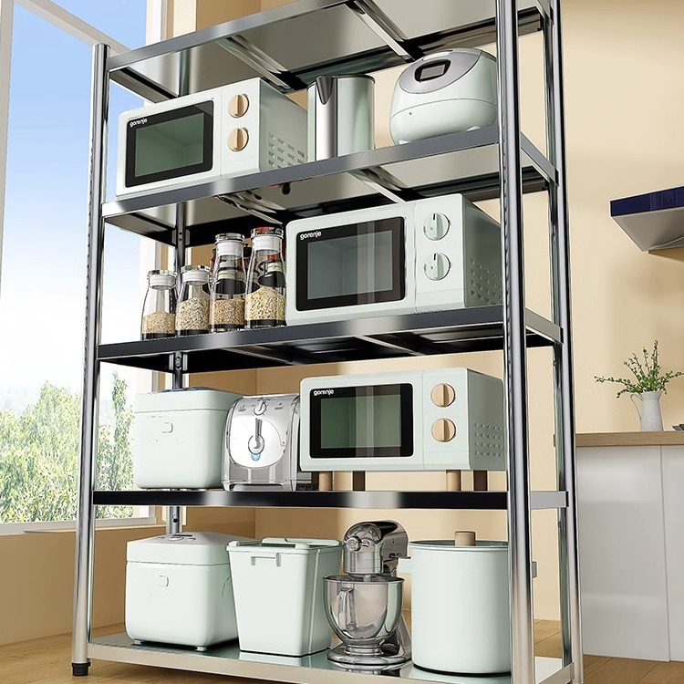 ステンレスキッチン棚床置き多層5階家庭用棚電子レンジ収納棚雑物収納棚