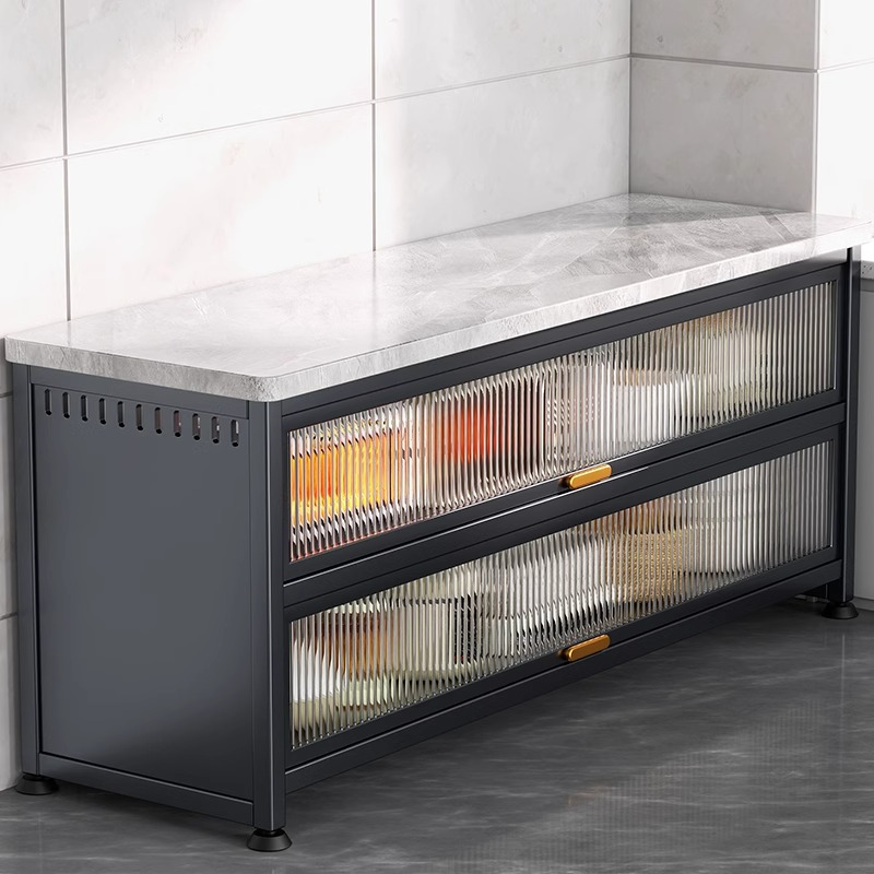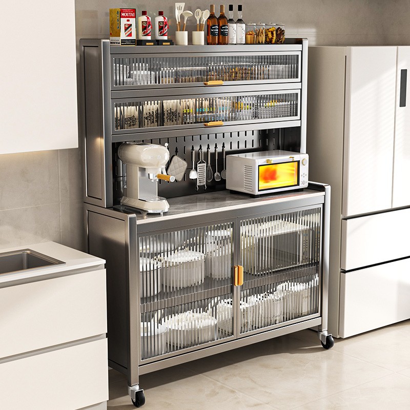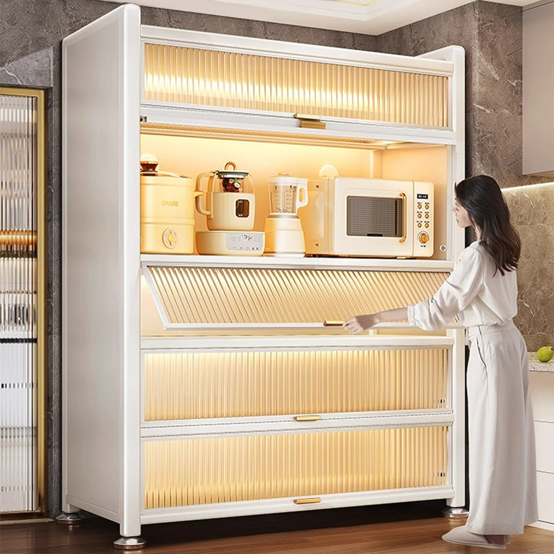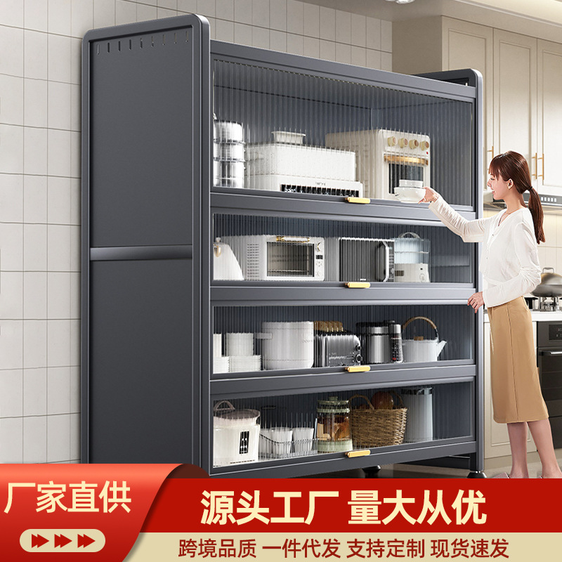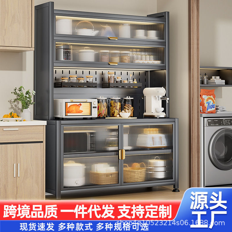 岩板厨房物置棚の食事のそばに物を置いて床に置く多層電子レンジ多機能収納食器棚の戸棚