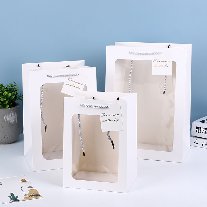 窓を開けた透明なギフトバッグバレンタインデープレゼントバッグ花プレゼントバッグ結婚お土産バッグショーウインドー手提げ袋