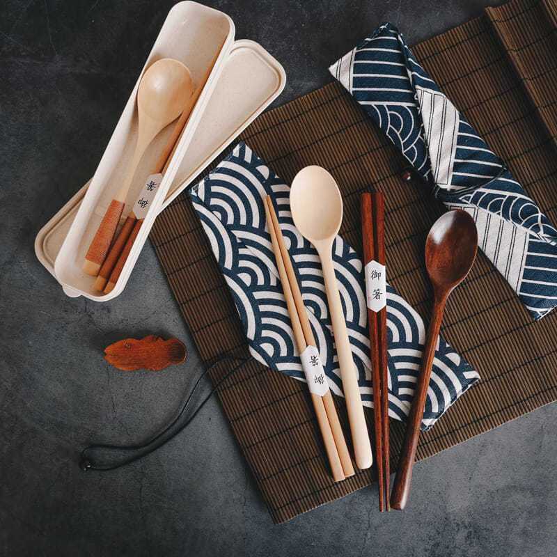 学生の実木スプーンのフォークと箸の三点セットは個人の箸を入れます。