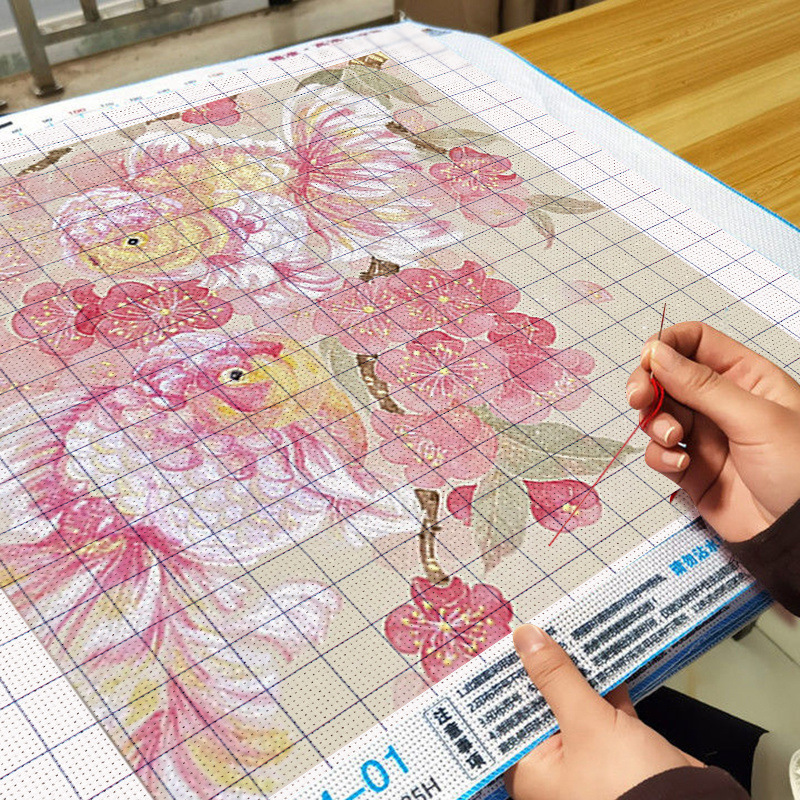 錦鯉十字刺繍2024新型花卉吉祥客間寝室満刺繍手作りdiy装飾画刺繍糸刺繍