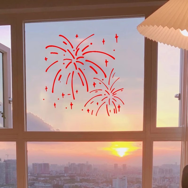 創意花火新年ショーウインドーのガラスシール2024龍年春節旧正月に床に落ちて窓を飾って絵を貼ります。