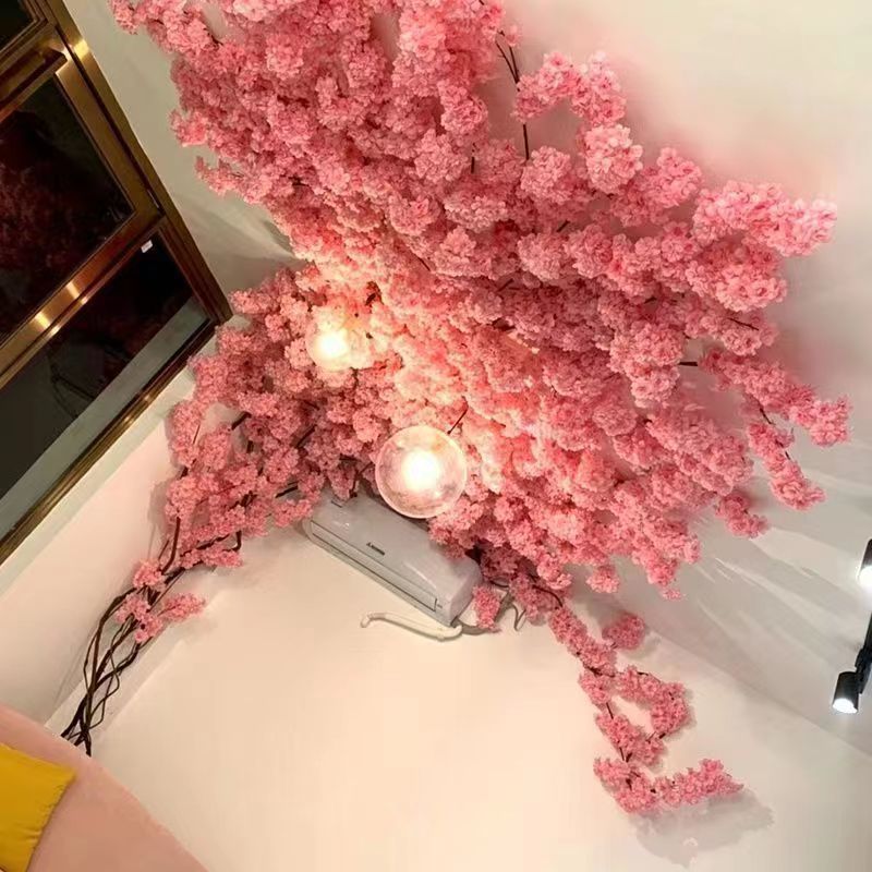 桜の木の枝の結婚祝いの室内の客間の壁面の背景をシミュレーションします。