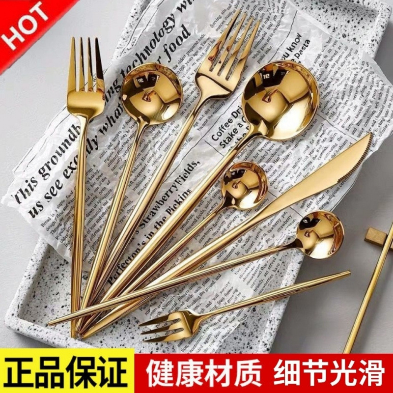 ステンレスナイフフォークスプーン洋食食器スプーン3点セットステーキゴールドシルバーレトロinsデザート家庭用