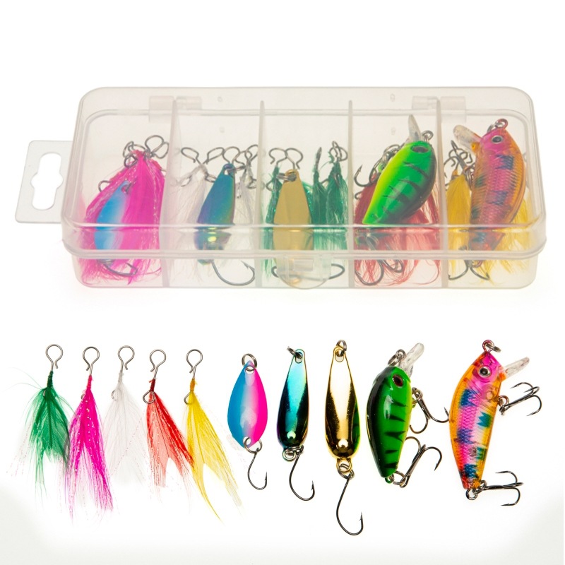 クロスボーダー 20 個ルアー餌ミノーポートラッキングスパンコール餌釣り取り外し可能な羽ペンダント釣具セット