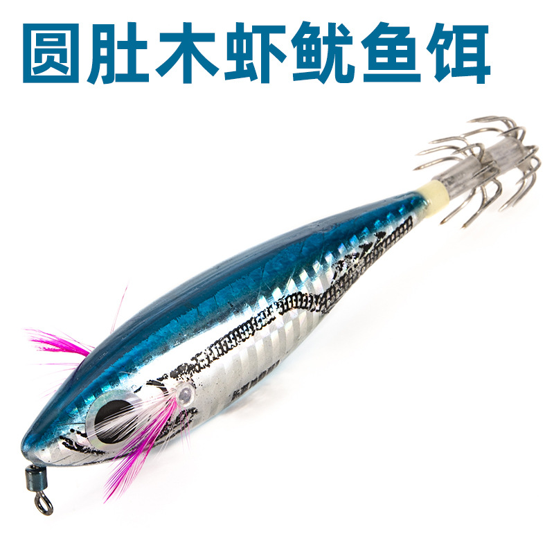 新商品の青い丸い腹の木のエビのイカのフックabsのプラスチックの偽の餌は鉛の路亜の餌の木のエビのイカのフックの卸売りを包みます。