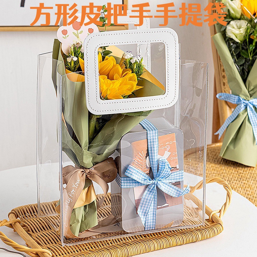 教師の日用ポータブルフラワーハンドバッグ、PVCプラスチックウィンドウバッグ、インスタ映え高級ギフト包装袋、工場卸売