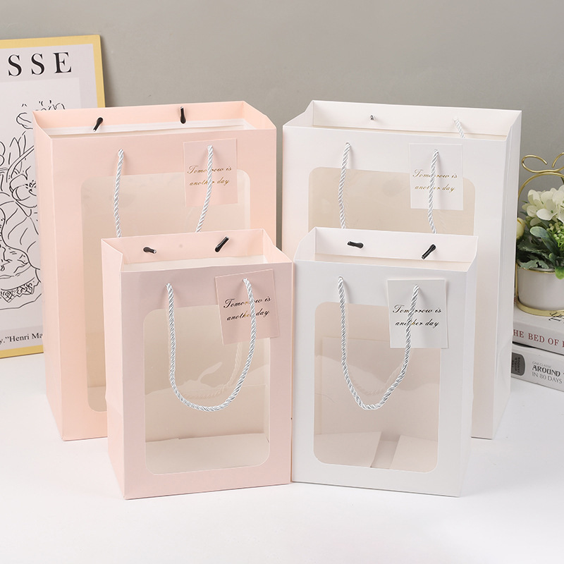 ネット赤透明ショーウインドー生花ギフトボックス包装袋手提げ袋ネットクリエイティブpvcギフトバッグ花束バッグ