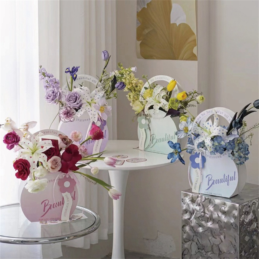 漢唐美潮牌小提袋軽豪華ファッションミニ小花箱花芸生け花袋折り畳み花包装ギフトボックス