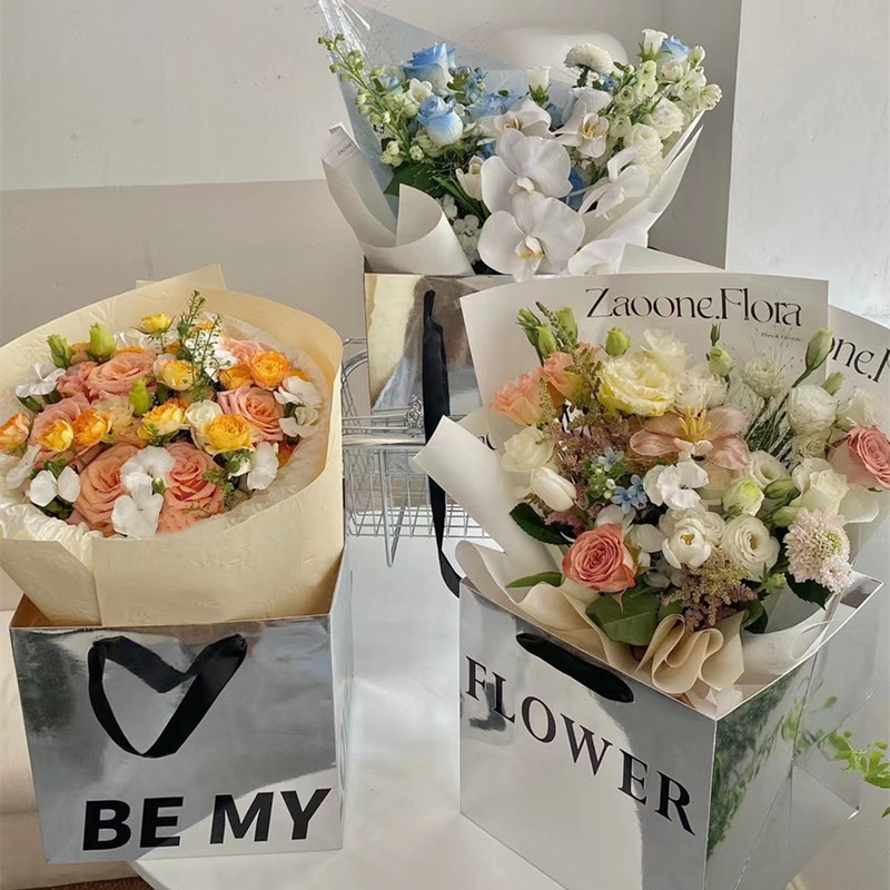 花手提げ袋鏡面ギフトバッグ銀色ギフトバッグ花屋包装袋包装紙花束袋