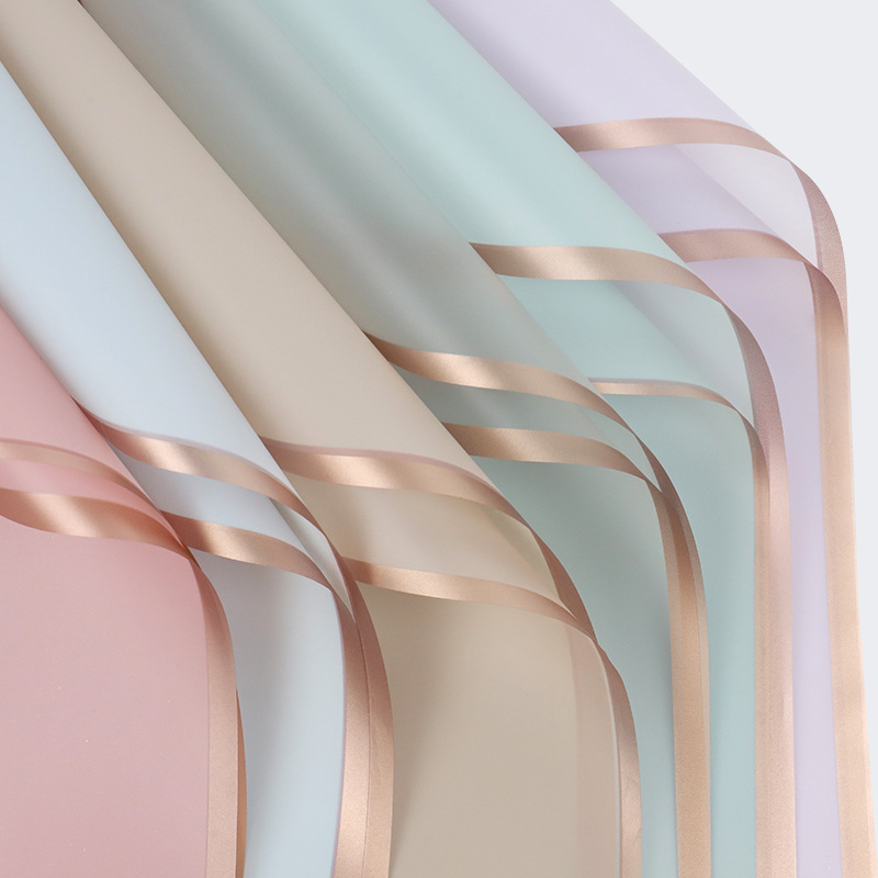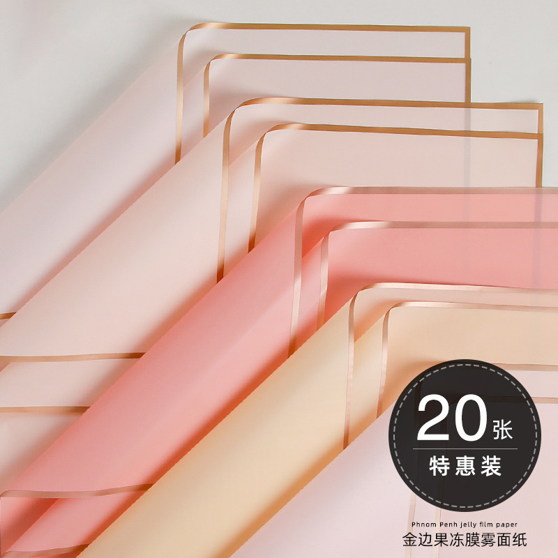 韓国式半透明防水霧面紙韓素紙包花紙金辺ゼリー膜純色マット花包装紙