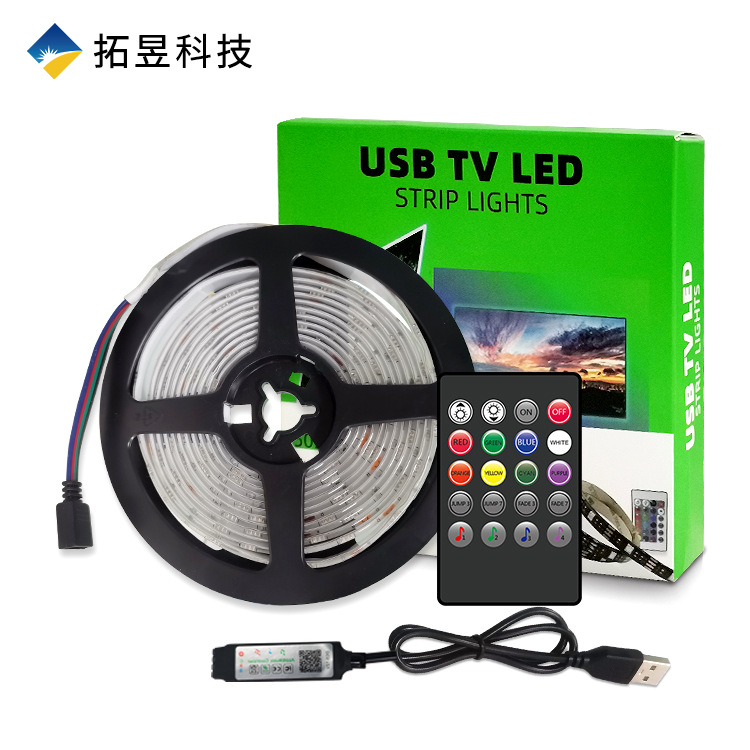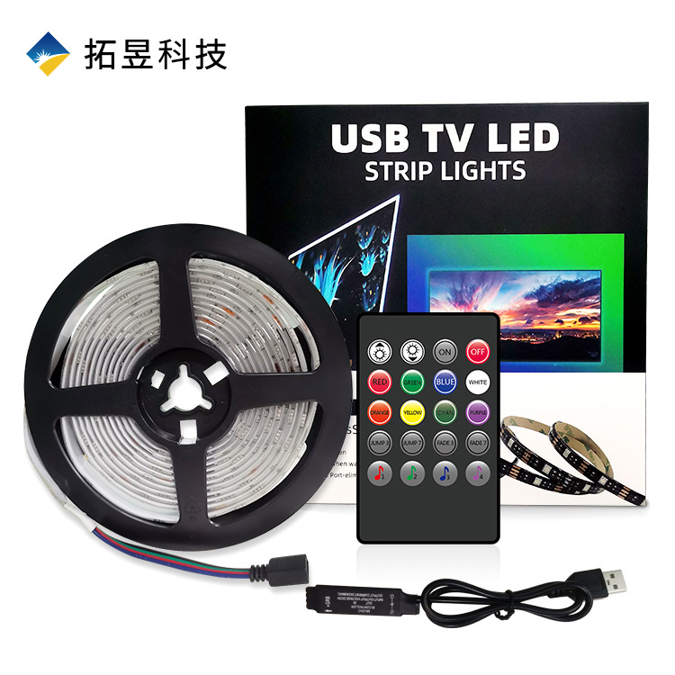 蓝5VLED灯带套装5050RGB防水USB24键蓝牙电视背景氛围灯音乐互动