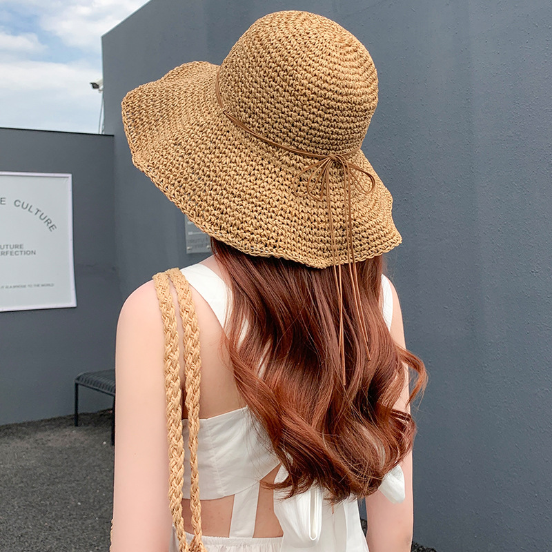 韓国版折り畳み可能な手作りの大縁の麦わら帽子の女性は夏に小清新な海辺の砂浜の夏の日焼け止めの帽子を合わせます。