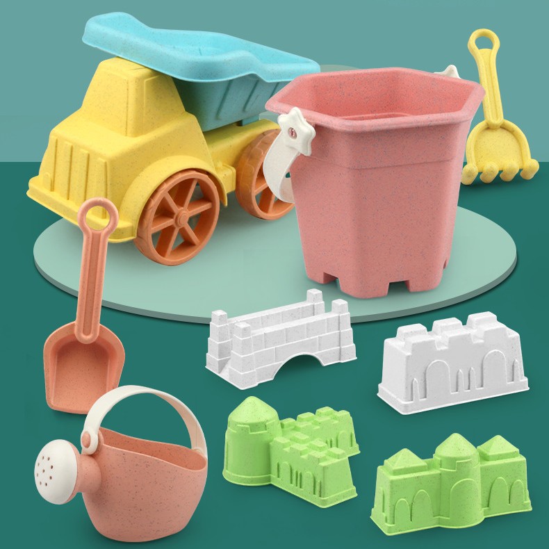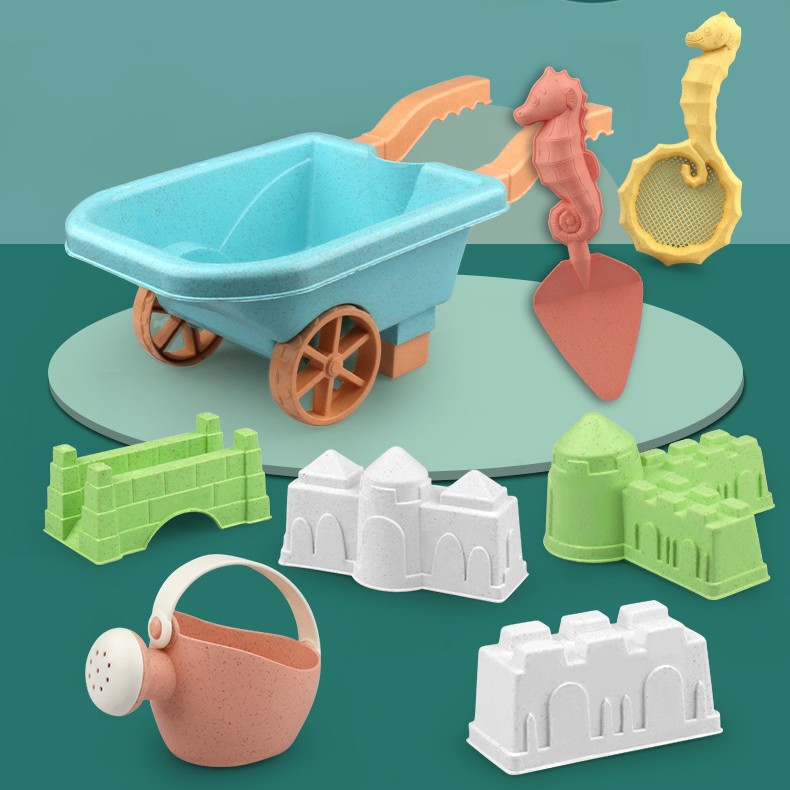 国境を越えた小麦わら素材の子供用夏の屋外海辺の水遊びビーチおもちゃ 8 点セット砂掘りツール卸売