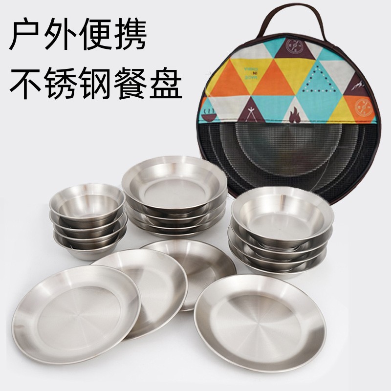 屋外食器ポータブルセット304ステンレス皿箸キャンプピクニック皿キャンプ果物皿旅行