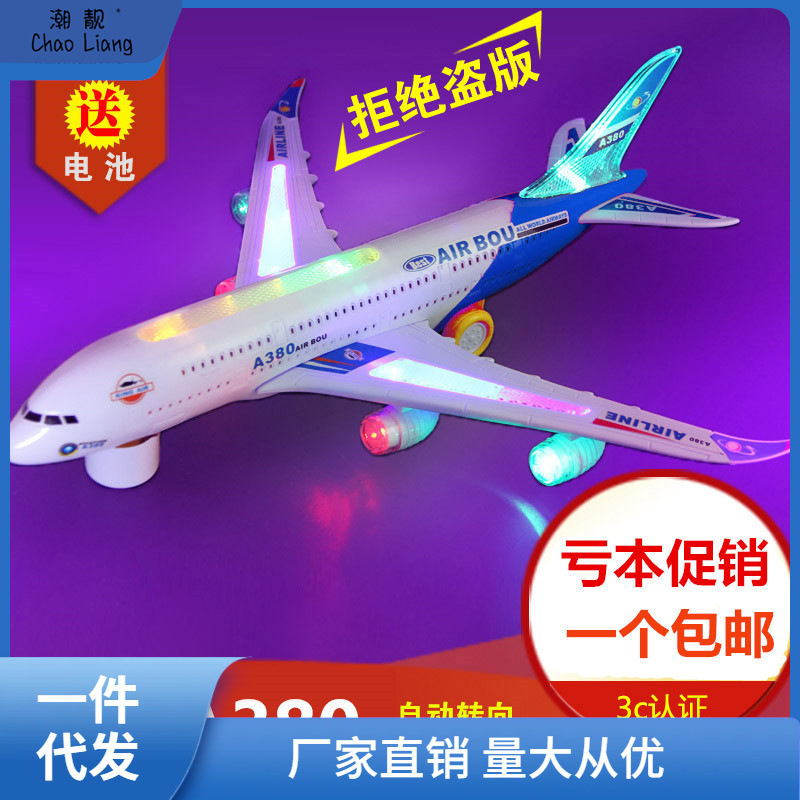 エアバスA380子供電動玩具飛行機模型音光組立フラッシュ旅客機大包郵便