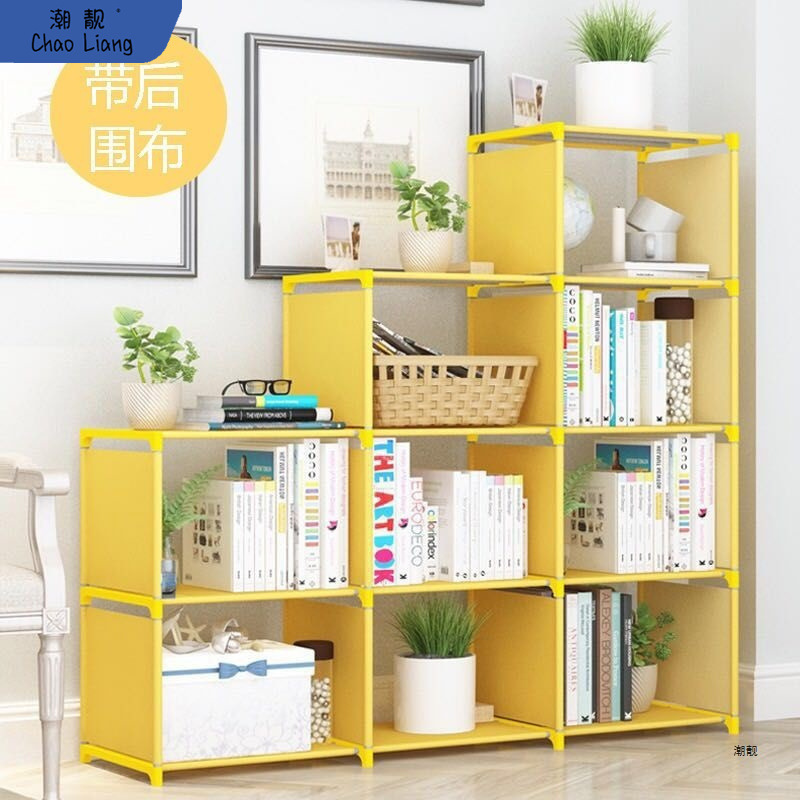 後ろの布を持っています。簡易本棚の棚が床に落ちています。