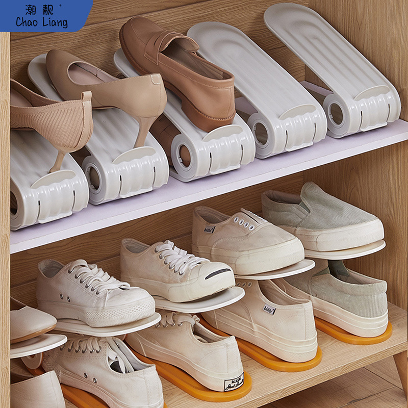靴棚収納二重調整可能な省スペース棚下駄箱の階層仕切り板整理靴プラスチック郵便