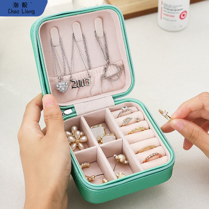 ジッパーの小さいサイズの携帯旅行のアクセサリーの箱の多層のイヤリングのピアスのアクセサリーのネックレスのアクセサリーの収納箱の大きい郵送