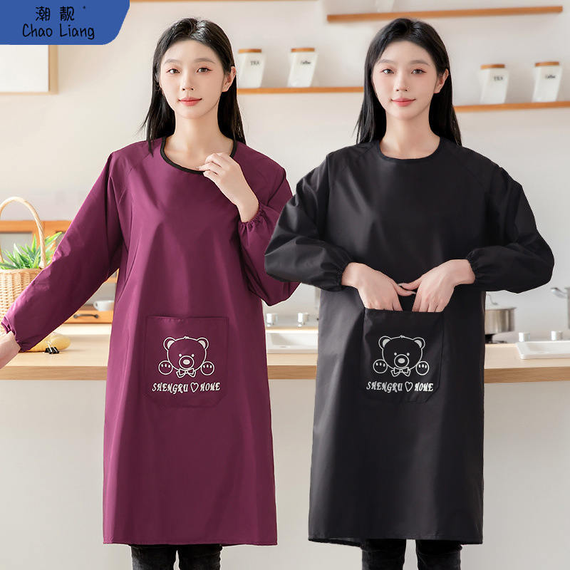 長袖防水男女反着カバー大人の新しいエプロン家庭用キッチン料理の外に薄いタイプの工包郵便を着ています。
