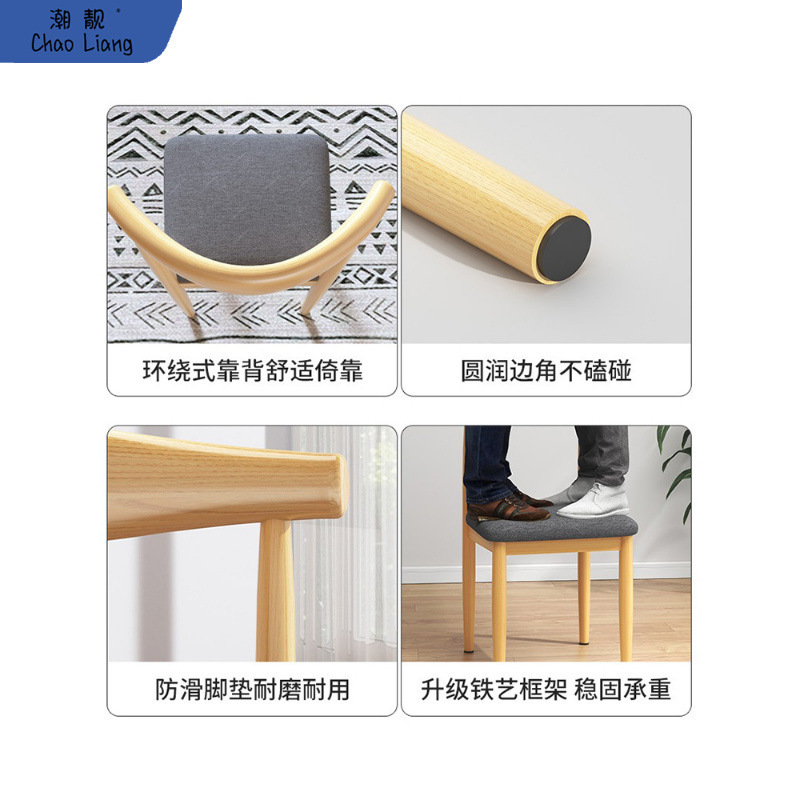 ダイニングチェア家庭用北欧背もたれ腰掛け机現代シンプル寮大学生模造実木鉄芸牛角包郵便