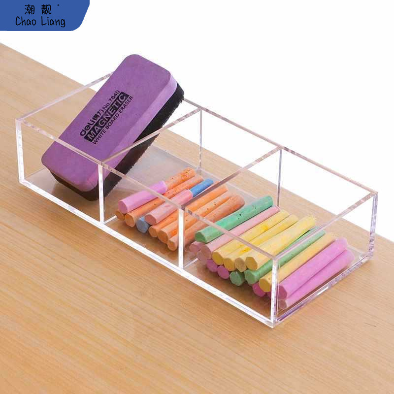 アクセサリーの箱は格別に収納して箱の物の2つのチョークの透明なアクリルの机のデスクトップの教壇の小さい板を拭いて郵送します。