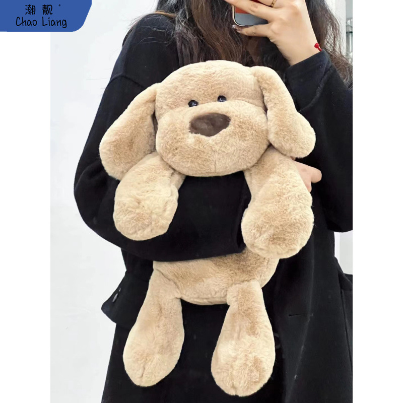 かわいい子犬のぬいぐるみはぬいぐるみのおもちゃを修理します。女の子は寝ます。