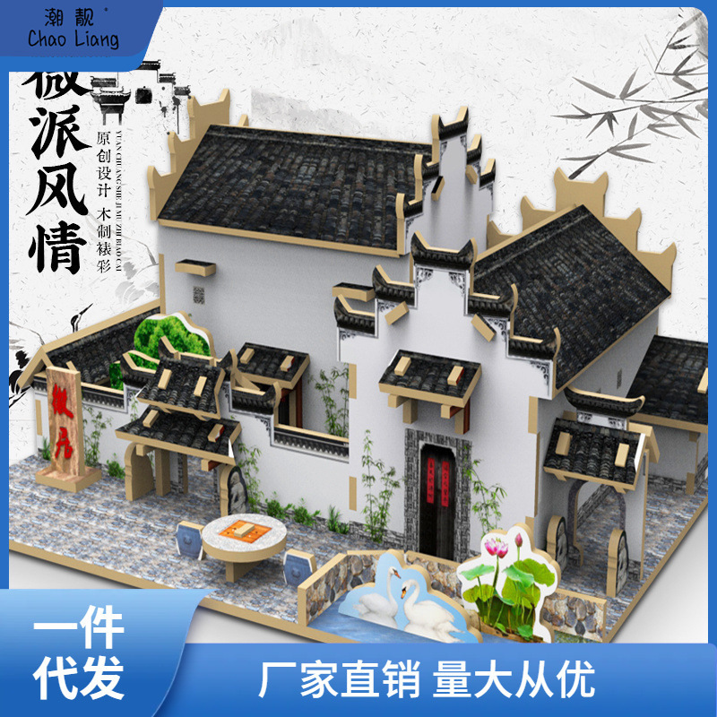 中派古建築四合院の家の模型の木製の立体のジグソーパズルの子供の手作りの3dは郵送します。
