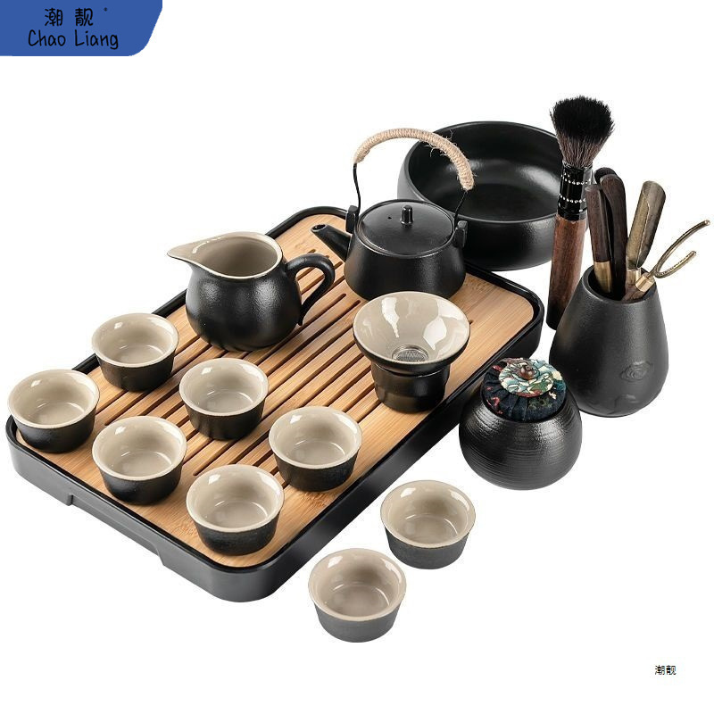 日本式の黒陶の茶器の小さいセットの工夫は碗のお茶の杯の家庭の簡単な客間の事務をかぶせます。